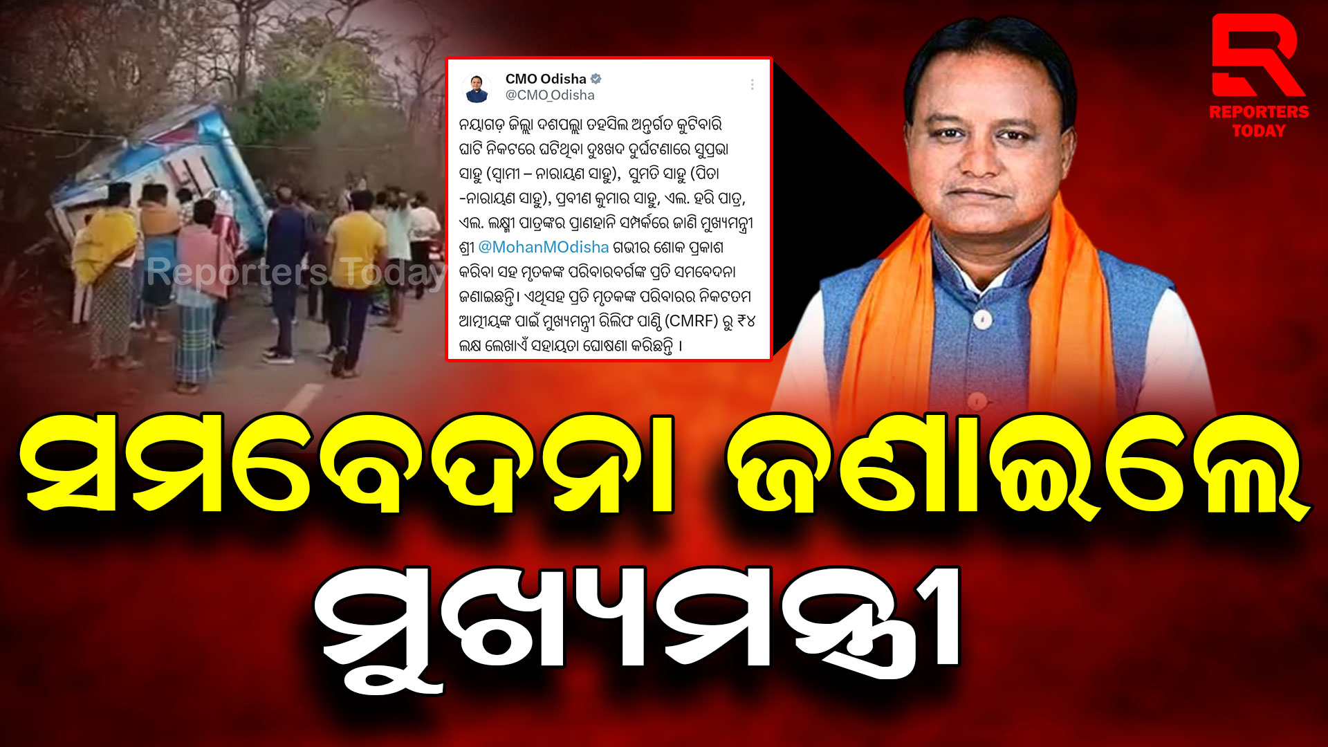 ନୟାଗଡ଼ ଦଶପଲ୍ଲା ଟାକେରା ନିକଟରେ ଟୁରିଷ୍ଟ ବସ ଦୁର୍ଘଟଣାରେ ସହାୟତା ରାଶି ଘୋଷଣା କଲେ ମୁଖ୍ୟମନ୍ତ୍ରୀ । ଗଭୀର ଶୋକ ପ୍ରକାଶ କରିବା ସହିତ ପରିବାରକୁ ସମବେଦନା ଜଣାଇଛନ୍ତି । ଏଥିସହିତ ପ୍ରତି ମୃତକଙ୍କ ପରିବାରକୁ ମୁଖ୍ୟମନ୍ତ୍ରୀ ରିଲିଫ ପାଣ୍ଠିରୁ 4ଲକ୍ଷ ଲେଖାଏଁ ସହାୟତା ଘୋଷଣା କରିଛନ୍ତି । ତେବେ ସୂଚନା ମୁତାବକ ଟୁରିଷ୍ଟ ବସ ଦୁର୍ଘଟଣାରେ ୫ ମୃତ ୩୦ ରୁ ଉର୍ଦ୍ଧ ଗୁରୁତର ଆହତ ହୋଇଥିଲେ । ଗତକାଲି ମଧ୍ୟ ରାତିରେ ଦଶପଲ୍ଲା ଟାକେରା ପିଠାଖାଇ ଘାଟି ନିକଟରେ ଘଟିଥିଲା ଏହି ଭୟଙ୍କର ଦୁର୍ଘଟଣା। ମା ସିଂଘେଶ୍ଵରୀ ଅନିଲ୍ ନାମକ ଘରୋଇ ଦଶପଲ୍ଲା ଟାକେରା ପିଠାଖାଇ ଘାଟି ନିକଟରେ ଭାରସାମ୍ୟ ହରାଇ ଓଲଟି ପଡିଥିଲା । ମୃତକ ମାନେ ହେଲେ ବ୍ରହ୍ମପୁରର ଏଲ ହରି ପାତ୍ର, ଲାଷ୍ମୀ ପାତ୍ର ଦୁହେଁ ସ୍ବାମୀ ସ୍ତ୍ରୀ ଅଟନ୍ତି। ସେହି ଭଳି ସୁପ୍ରଭା ସାହୁ  ଏବଂ ସୁମନ୍ତି ସାହୁଙ୍କର ମଧ୍ୟ ମୃତ୍ୟୁ ହୋଇଛି। ବସ ଡ୍ରାଇଭର ପ୍ରବୀଣ କୁମାର ସାହୁଙ୍କର ମଧ୍ୟ ଘଟଣା ସ୍ଥଳରେ ମୃତ୍ୟୁ ହୋଇଛି। ତାଙ୍କର ଘର ଭଞ୍ଜନଗର କୁଲାଡ଼ ଗାଁରେ ବୋଲି ଜଣା ପଡ଼ିଛି। ଘଟଣା ସ୍ଥଳରେ ଦଶପଲ୍ଲା ଥାନା ପୋଲିସ ପହଞ୍ଚି ତଦନ୍ତ ଆରମ୍ଭ କରିଛି। ଡ୍ରାଇଭର ମଦପିଇ ଗାଡି ଚଳାଉଥିବା ନେଇ ଅଭିଯୋଗ ହୋଇଛି। ୩ ଦିନିଆ ଟୁରୁ ରେ ୧୧ ଟି ସ୍ଥାନ ପରିଭ୍ରମଣ କରିବା ପାଇଁ ଶୁକ୍ରବାର ରାତିରେ ୫୦ ରୁ ଉର୍ଦ୍ଧ ତ୍ରୀର୍ଥ ଯାତ୍ରୀ ଙ୍କୁ ଧରି ବ୍ରହ୍ମପୁର ରୁ ବାହାରିଥିଲା ଏହି ଅନିଲ୍ ବସ।