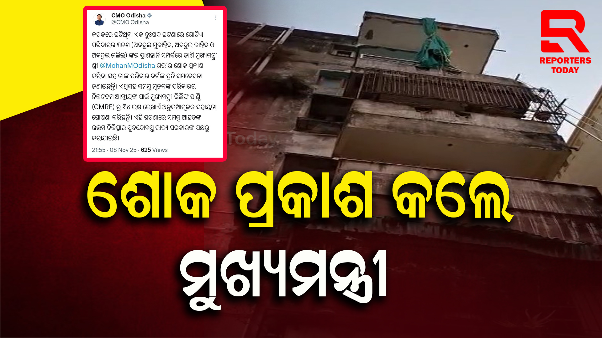 ପୁରୁଣା କୋଠା ଭୁଶୁଡ଼ି ୩ ଜଣଙ୍କ ମୃତ୍ୟୁ ଘଟଣାରେ ମୁଖ୍ୟମନ୍ତ୍ରୀଙ୍କ ଗଭୀର ଶୋକ ପ୍ରକାଶ