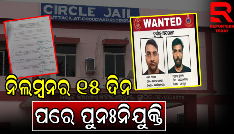 କଟକ: ଚୌଦ୍ବାର ଜେଲ୍‌ରୁ କଏଦୀ ଚମ୍ପଟ ମାରିବା ଘଟଣାରେ ଚାଞ୍ଚଲ୍ୟକର ତଥ୍ୟ । ସାମ୍ନାକୁ ଆସିଲା ଜେଲ୍ ବିଭାଗର ଆଉ ଏକ କଳା କାରନାମା । କାର୍ଯ୍ୟରେ ଅବହେଳା କରିଥିବା କର୍ମଚାରୀଙ୍କ ପ୍ରତି ଅହେତୁକ ଅନୁକଂପା । ନିଲମ୍ବନର ମାତ୍ର ୧୫ ଦିନ ପରେ କର୍ମଚାରୀଙ୍କୁ ପୁନଃନିଯୁକ୍ତି । ଚିଫ୍ ୱାର୍ଡର ଭଗତ ଚରଣ ରାମଙ୍କୁ ଅକ୍ଟୋବର ୩ରେ ନିଲମ୍ବନ ହୋଇଥିଲେ । ଅକ୍ଟୋବର ୧୮ରେ କେନ୍ଦ୍ରାପଡ଼ା ଜିଲ୍ଲାରେ ମିଳିଛି ପୁନଃନିଯୁକ୍ତି । ନିଲମ୍ବନ ବିଭାଗୀୟ କାର୍ଯ୍ୟାନୁଷ୍ଠାନ ନା କେବଳ ଲୋକ ଦେଖାଣିଆ ଉଠିଛି ପ୍ରଶ୍ନ ।