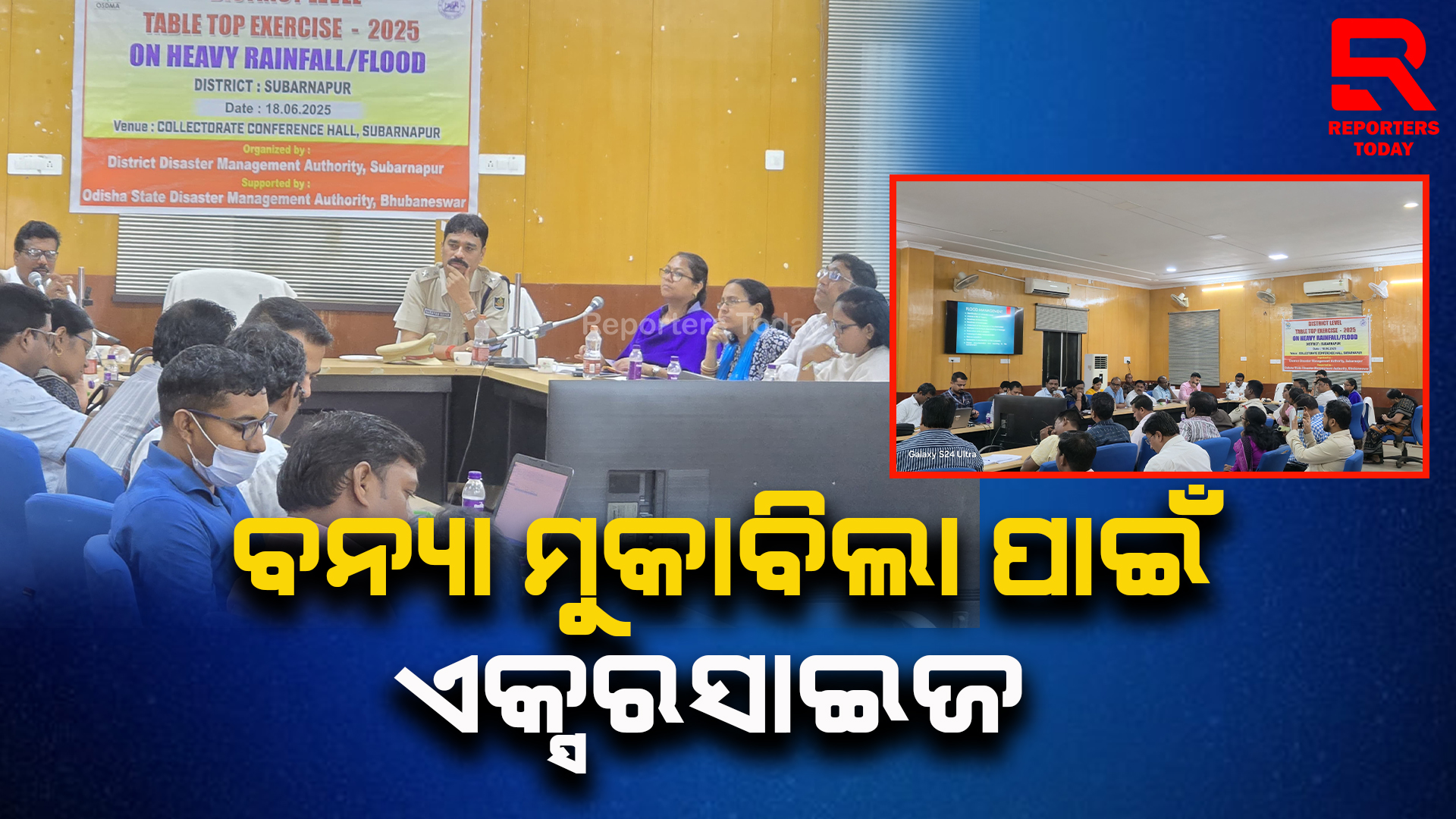 ସୁବର୍ଣ୍ଣପୁର (ଓମ୍ ପ୍ରକାଶ ମିଶ୍ର) ଜିଲ୍ଲାରେ ସମ୍ଭାବ୍ୟ ବନ୍ୟା ପରିସ୍ଥିତିର ମୁକାବିଳା ପାଇଁ ଅତିରିକ୍ତ ଜିଲ୍ଲାପାଳ ସୁବର୍ଣ୍ଣପୁର ଶ୍ରୀଯୁକ୍ତ ରାଜେନ୍ଦ୍ର ମାଝୀଙ୍କ ଅଧ୍ୟକ୍ଷତାରେ ଜିଲ୍ଲାସ୍ତରୀୟ ଟେବୁଲ ଟପ ଏକ୍ସରସାଇଜ ଜିଲ୍ଲାପାଳଙ୍କ କାର୍ଯ୍ୟାଳୟ ସମ୍ମିଳନୀ କକ୍ଷଠାରେ ଅନୁଷ୍ଠିତ ହୋଇଯାଇଛି। ଜିଲ୍ଲା ଜରୁରୀକାଳୀନ ଶାଖା ଦ୍ଵାରା ଆହୂତ ଏହି କାର୍ଯ୍ୟକ୍ରମରେ ଜିଲ୍ଲାରେ ସମ୍ଭାବ୍ୟ ବନ୍ୟାର ଉଚିତ ମୁକାବିଳା ପାଇଁ ବିଭାଗୀୟ ପ୍ରସ୍ତୁତି ଓ କାର୍ଯ୍ୟକାରିତା ଉପରେ ସମ୍ପୃକ୍ତ ବିଭାଗ ଦ୍ୱାରା ବନ୍ୟା ପୂର୍ବରୁ,ବନ୍ୟା ସମୟରେ ଓ ବନ୍ୟା ପରବର୍ତ୍ତୀ ପଦକ୍ଷେପ ଉପରେ ସମ୍ପୃକ୍ତ ବିଭିନ୍ନ ବିଭାଗୀୟ କାର୍ଯ୍ୟକ୍ରମର ବିସ୍ତୃତ ତଥ୍ୟ ଦୃଶ୍ୟଶ୍ରାବ୍ୟ ମାଧ୍ୟମରେ ଉପସ୍ଥାପନା କରାଯାଇଥିଲା ।