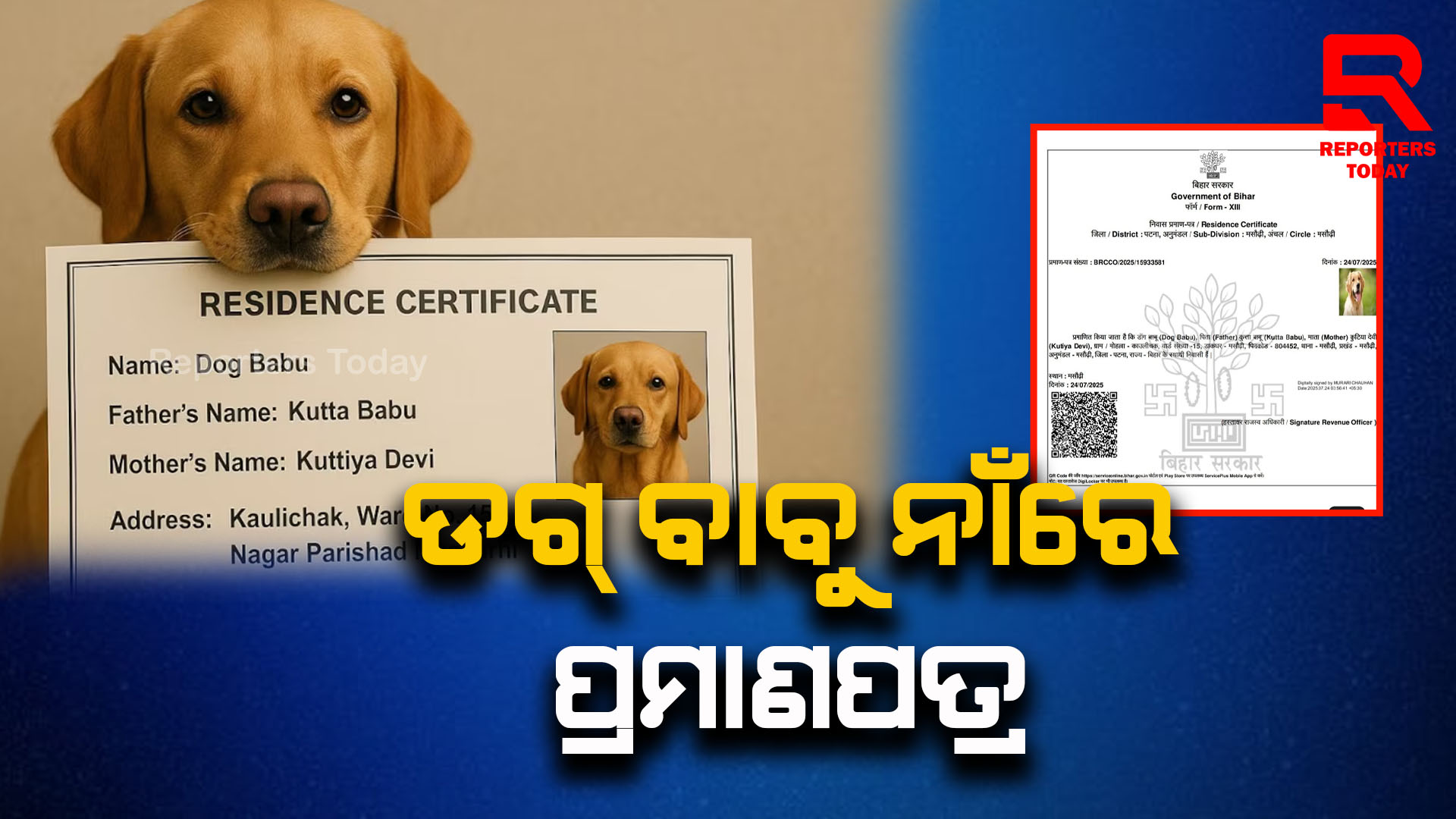 କୁକୁର ନାଁରେ ବାହାରିଲା ରେସିଡେଣ୍ଟ ସାର୍ଟିଫିକେଟ…