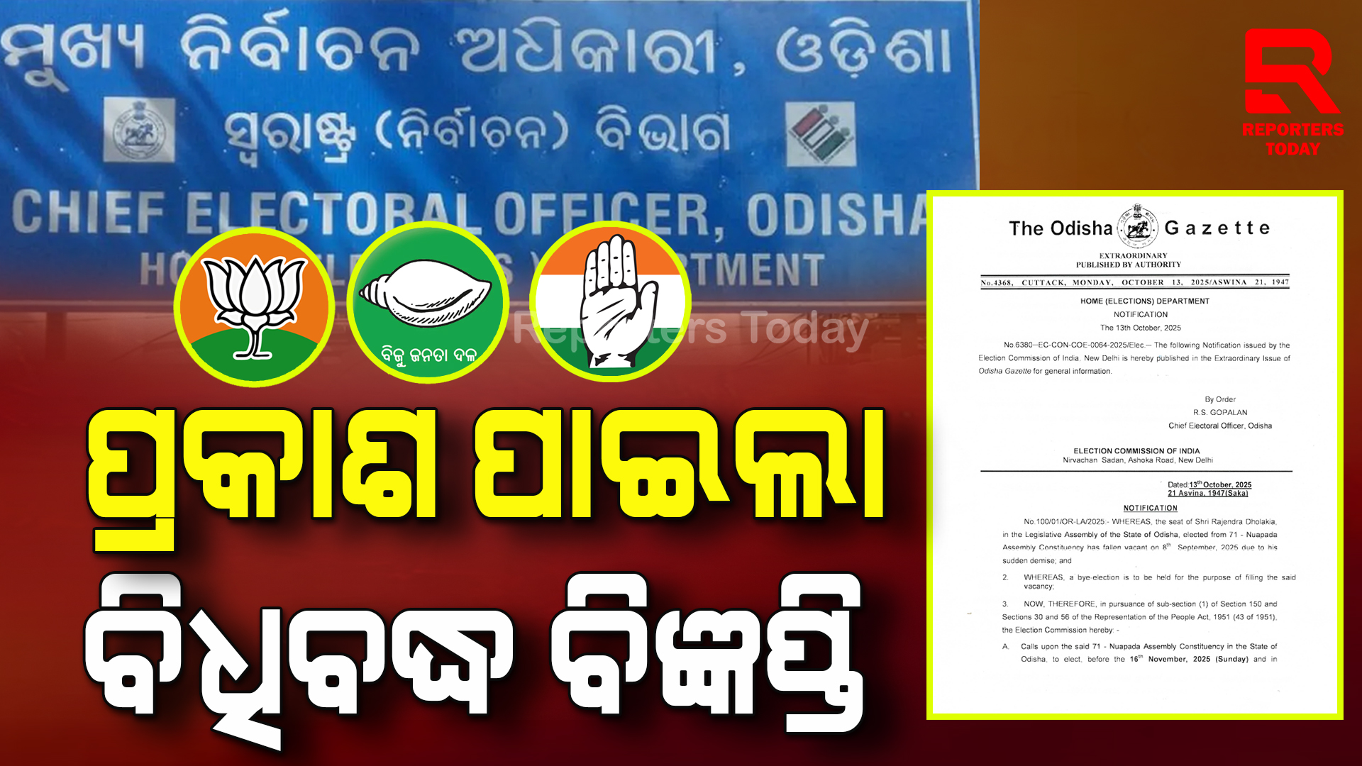 ନୂଆପଡା ଉପନିର୍ବାଚନ ପାଇଁ ବିଧିବଦ୍ଧ ବିଜ୍ଞପ୍ତି ପ୍ରକାଶ ପାଇଲ, ଆଜିଠାରୁ ନାମାଙ୍କନ ଦାଖଲ କରିପାରିବେ ପ୍ରାର୍ଥୀ