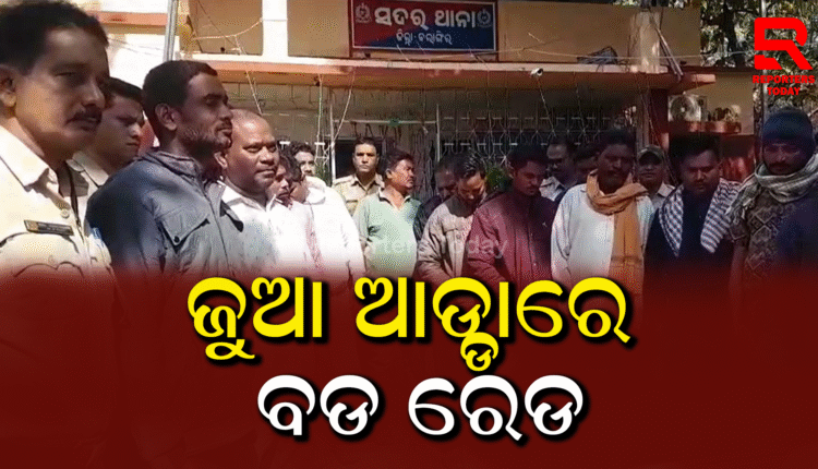 ବଲାଙ୍ଗୀର ସଦର ପୋଲିସ ପକ୍ଷରୁ କୁଟୁରାପାଲି ଗ୍ରାମର ଧିରୁ ଥାନାପତିଙ୍କ କୁକୁଡ଼ା ଫାର୍ମରେ ଚାଲୁଥିବା ଜୁଆ ଅଡ୍ଡାରେ ଆକସ୍ମିକ ଚଢ଼ାଉ କରାଯାଇ ୧୭ ଜଣ ଯୁଆଡ଼ିଙ୍କୁ ଗିରଫ କରାଯାଇଛି। ବଲାଙ୍ଗୀର SDPO ସାମ୍ବାଦିକ ସମ୍ମିଳନୀରେ ଏହା ସମ୍ପର୍କରେ ସମ୍ପୂର୍ଣ ତଥ୍ୟ ଦେଇଛନ୍ତି । ଦୀର୍ଘଦିନ ଧରି ଚାଲୁଥିବା ଏହି ଅବୈଧ ଜୁଆ ଖେଳ ସମ୍ବନ୍ଧରେ ସୁଚନା ମିଳିବା ପରେ SPଙ୍କ ନିର୍ଦ୍ଦେଶରେ ସଦର ପୋଲିସ IIC ରାଜକୁମାର ବିଶ୍ୱାଳଙ୍କ ନେତୃତ୍ବରେ ଏକ ବିଶେଷ ଟିମ ଚଢ଼ାଉ କରିଥିଲା। ଉକ୍ତସ୍ଥାନରୁ ୧୭ ଜଣ ଯୁଆଡ଼ିଙ୍କୁ ଗିରଫ କରିଥିବା ବେଳେ ମୁଖ୍ୟ ଚକ୍ରନ୍ତକାରୀ ମାଷ୍ଟରମାଇଣ୍ଡ ସହିତ ଅନ୍ୟ କେତେକ ଅଭିଯୁକ୍ତ ଫେରାର ମାରିଛନ୍ତି l ଚଢ଼ାଉ ସମୟରେ 1ଟି କାର, 12ଟି ବାଇକ, 15ଟି ମୋବାଇଲ ଫୋନ ଓ ନଗଦ 1,49,470 ସହିତ ଜୁଆ ଖେଳ ସାମଗ୍ରୀ ଜବତ କରିଛି ପୋଲିସ l ଗିରଫ ହୋଇଥିବା ସମସ୍ତଙ୍କ ବିରୁଦ୍ଧରେ ଆଇନାନୁସାରେ କାର୍ଯ୍ୟନୁଷ୍ଠାନ ନିଆଯାଇଛି। ଫେରାର ଅଭିଯୁକ୍ତମାନେଙ୍କୁ ଧରିବା ପାଇଁ ବଲାଙ୍ଗୀର ପୋଲିସ ତଦନ୍ତ ଜୋରଦାର କରିଛି।