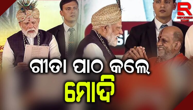 ନୂଆଦିଲ୍ଲୀ: ପ୍ରଧାନମନ୍ତ୍ରୀ ନରେନ୍ଦ୍ର ମୋଦୀ ଆଜି ଦିନିକିଆ କର୍ଣ୍ଣାଟକରେ ଗସ୍ତରେ ଯାଇଛନ୍ତି। ଉଡୁପିରେ ଚାଲିଥିବା ଜଗଦଗୁରୁ ଶ୍ରୀ ଶ୍ରୀ ସୁଗୁଣେନ୍ଦ୍ର ତୀର୍ଥ ସ୍ୱାମୀଜୀ ବିଶ୍ୱ ଗୀତା ପର୍ୟ୍ୟୟ ଲକ୍ଷ୍ୟ କଣ୍ଠ ଗୀତା ପାରାୟଣକୁ ପ୍ରଧାନମନ୍ତ୍ରୀ ନରେନ୍ଦ୍ର ମୋଦୀଙ୍କୁ ସ୍ୱାଗତ କରାଯାଇଥିଲା। ଆଉ ଏଠାରେ ଏକ ଭବ୍ଯ ମୁହୁର୍ତ୍ତର ସାକ୍ଷୀ ମଧ୍ୟ ହୋଇଛନ୍ତି ପ୍ରଧାନମନ୍ତ୍ରୀ। ଏଠାରେ ସେ ଗୀତା ପାଠ କରିବାର ସୁଯୋଗ ପାଇଥିଲେ।