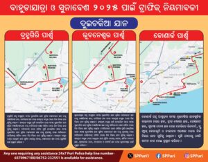 ସୁଗମ ଯାନବାହାନ ଚଳାଚଳ ଏବଂ ଉତ୍ତମ ଭିଡ଼ ପରିଚାଳନା ପାଇଁ ପୁରୀ ଜିଲ୍ଲା ପୋଲିସ ଟ୍ରାଫିକ ପରାମର୍ଶ ଜାରି କରିଛି