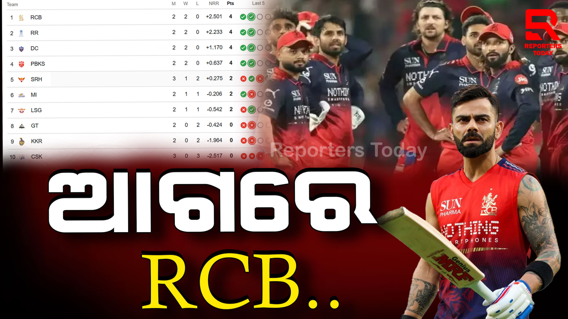 ଆଇପିଏଲ୍ ମହାସମରରେ ଶୀର୍ଷରେ RCB