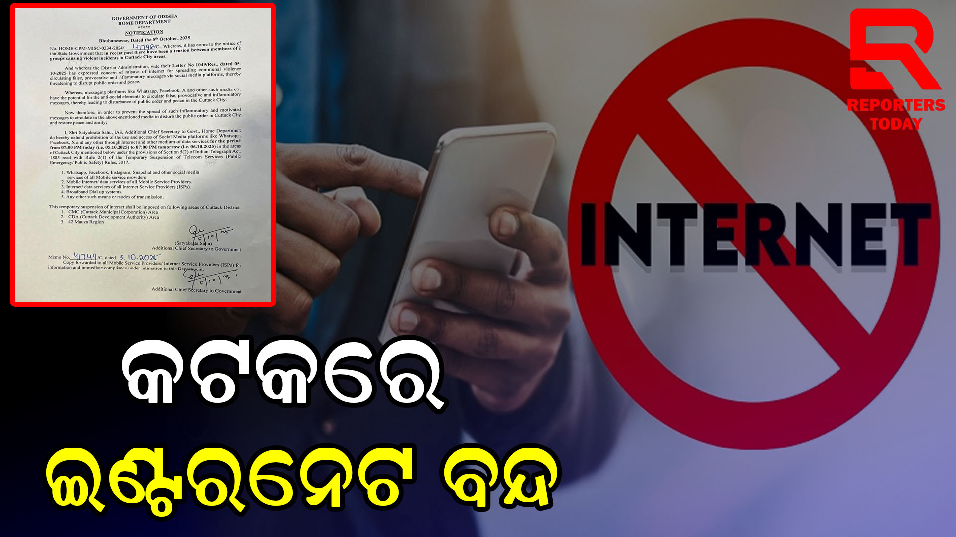 କଟକ ସହର ଅଞ୍ଚଳରେ ଦୁଇଟି ଗୋଷ୍ଠୀର ସଦସ୍ୟଙ୍କ ମଧ୍ୟରେ ଉତ୍ତେଜନା ଦେଖାଦେଇଛି ଯାହା ହିଂସାତ୍ମକ ଘଟଣା ଘଟାଇଛି । ଇଣ୍ଟରନେଟର ଅପବ୍ୟବହାର ଦ୍ୱାରା ସାମ୍ପ୍ରଦାୟିକ ହିଂସା ପ୍ରସାରଣ ଏବଂ ସୋସିଆଲ ମିଡିଆ ପ୍ଲାଟଫର୍ମ ମାଧ୍ୟମରେ ମିଥ୍ୟା, ଉତ୍ତେଜନାପୂର୍ଣ୍ଣ ଏବଂ ଉତ୍ତେଜନାପୂର୍ଣ୍ଣ ବାର୍ତ୍ତା ପ୍ରସାରଣ ନେଇ ଚିନ୍ତା ପ୍ରକାଶ କରିଛନ୍ତି ସରକାର ଯାହା ଫଳରେ ସାର୍ବଜନୀନ ଶୃଙ୍ଖଳା ଏବଂ ଶାନ୍ତି ବିପର୍ଯ୍ୟସ୍ତ ହେବାର ଆଶଙ୍କା ରହିଛି । କଟକ ସହର ରେ ଶାନ୍ତି ଫେରାଇ ଆଣିବା ପାଇଁ ସରକାର ଙ୍କ ବଡ଼ ପଦକ୍ଷେପ । କଟକ ସହରରେ ଆଜି ସନ୍ଧ୍ୟା ୦୭ ଟା ଠାରୁ ଆସନ୍ତାକାଲି ସନ୍ଧ୍ୟା ୦୭ ଟା ପର୍ଯ୍ୟନ୍ତ ଇଣ୍ଟରନେଟ୍ ଏବଂ ଅନ୍ୟାନ୍ୟ ଡାଟା ସେବା ମାଧ୍ୟମରେ ସୋସିଆଲ ମିଡିଆ ପ୍ଲାଟଫର୍ମର ବ୍ୟବହାର ଏବଂ ପ୍ରବେଶ ଉପରେ ନିଷେଧ ଜାରି । ସମସ୍ତ ମୋବାଇଲ୍ ସେବା ପ୍ରଦାନକାରୀଙ୍କ ହ୍ୱାଟ୍ସଅପ୍, ଫେସବୁକ୍, ଇନଷ୍ଟାଗ୍ରାମ୍, ସ୍ନାପଚଟ୍ ଏବଂ ଅନ୍ୟାନ୍ୟ ସାମାଜିକ ଗଣମାଧ୍ୟମ ସେବା ବନ୍ଦ ରହିବ । ସମସ୍ତ ମୋବାଇଲ୍ ସେବା ପ୍ରଦାନକାରୀଙ୍କ ମୋବାଇଲ୍ ଇଣ୍ଟରନେଟ୍/ଡାଟା ସେବା ବନ୍ଦ । ସମସ୍ତ ଇଣ୍ଟରନେଟ୍ ସେବା ପ୍ରଦାନକାରୀ (ISPs)ଙ୍କ ଇଣ୍ଟରନେଟ୍/ଡାଟା ସେବା ବନ୍ଦ । ବ୍ରଡବ୍ୟାଣ୍ଡ ଡାଏଲ ଅପ୍ ସିଷ୍ଟମ ବନ୍ଦ । କଟକ ଜିଲ୍ଲାର ସିଏମସି (କଟକ ମ୍ୟୁନିସିପାଲ କର୍ପୋରେସନ) ଅଞ୍ଚଳ,ସିଡିଏ (କଟକ ଉନ୍ନୟନ କର୍ତ୍ତୃପକ୍ଷ) ଅଞ୍ଚଳ ରେ ଇଣ୍ଟରନେଟର ଏହି ଅସ୍ଥାୟୀ ବନ୍ଦ ଲାଗୁ କରାଯିବ ।