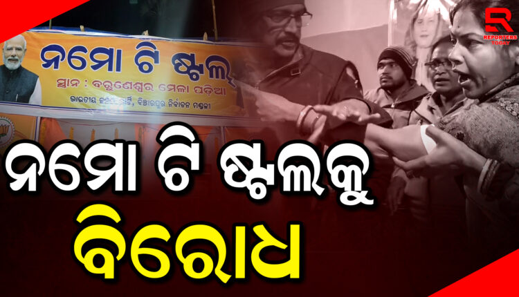 ନମୋ ଟି ଷ୍ଟଲ କୁ ହଟାଇବା ଦାବୀରେ ରାସ୍ତା ଅବରୋଧ