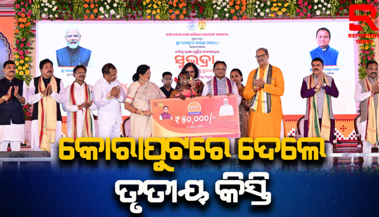 ଆଜି କୋରାପୁଟ ଜିଲ୍ଲାର  ଜୟପୁର ଠାରେ ଓଡ଼ିଶାର ସର୍ବବୃହତ ମହିଳା ସଶକ୍ତିକରଣ ଯୋଜନା “ସୁଭଦ୍ରା”ର ତୃତୀୟ କିସ୍ତି ପ୍ରଦାନ ଅବସରରେ ମୁଖ୍ୟମନ୍ତ୍ରୀ ଶ୍ରୀ ମୋହନ ଚରଣ ମାଝୀ କହିଛନ୍ତି। ଏଥି ସହିତ ମୁଖ୍ୟମନ୍ତ୍ରୀ, କୋରାପୁଟ ଜିଲ୍ଲାରେ, ୪୫୨ କୋଟି ଟଙ୍କାରୁ ଉର୍ଦ୍ଧ୍ୱ ୪୩୬ ଟି ପ୍ରକଳ୍ପର ଭିତ୍ତି ପ୍ରସ୍ତର ସ୍ଥାପନ କରିବା ସହିତ ୩୦୯.୪୨ କୋଟି ଟଙ୍କା ମୂଲ୍ୟର ୧୨୬ ଟି ନୂତନ ପ୍ରକଳ୍ପର ଶୁଭ ଉଦଘାଟନ କରିଥିଲେ। ଏଥିରେ ଶିକ୍ଷା, ସ୍ୱାସ୍ଥ୍ୟ, ସେତୁ, ସଡକ, ପର୍ଯ୍ୟଟନ ଭଳି ଗୁରୁତ୍ୱପୂର୍ଣ୍ଣ ଭିତ୍ତିଭୂମି ଉନ୍ନୟନମୂଳକ ପ୍ରକଳ୍ପ ରହିଛି । ଏହି ପ୍ରକଳ୍ପ ଗୁଡିକ କାର୍ଯ୍ୟକାରୀ ହେଲେ ଜିଲ୍ଲାର ବିକାଶ ଆହୁରି ତ୍ୱରାନ୍ୱିତ ହେବ ବୋଲି ମୁଖ୍ୟମନ୍ତ୍ରୀ କହିଛନ୍ତି।
