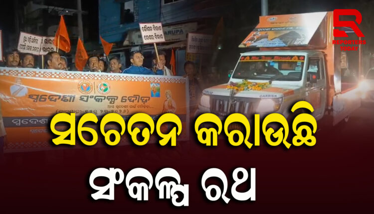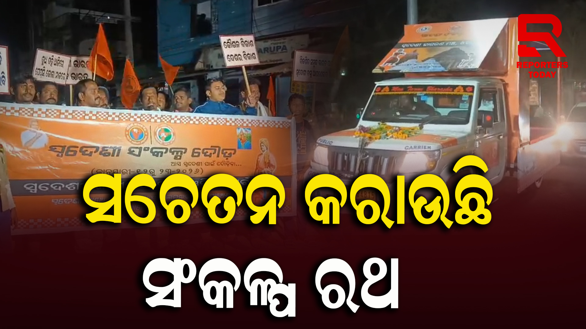 ବିଦେଶୀ ଦ୍ରବ୍ୟ ବର୍ଜନ କରି ନିଜ ଦେଶରେ ଦ୍ରବ୍ୟର ଚାହିଦା ବଢାଇବା ପାଇଁ ସ୍ୱଦେଶୀ ସଂକଳ୍ପ ଯାତ୍ରା ସଚେତନତା ରଥ ପୁରୀ ଠାରୁ ଆରମ୍ଭ ହୋଇଯାଇଛି। ଏହି ଅବସରରେ ପୁରୀରୁ ସଚେତନତା ରଥଟି ବାହାରି ଗଞ୍ଜାମ, ରାୟଗଡା ଦେଇ ଆଜି ପାରଳାଖେମୁଣ୍ଡି ପହଞ୍ଚିଥିଲା । ଫରେଷ୍ଟ ଗେଟ୍ ଠାରୁ ରଥକୁ ସ୍ବାଗତ କରିବା ସହ ଗଜପତି ବାସିନ୍ଦାଙ୍କୁ ସଚେତନତା ବାର୍ତ୍ତା ପ୍ରଦାନ କରିଥିଲେ।