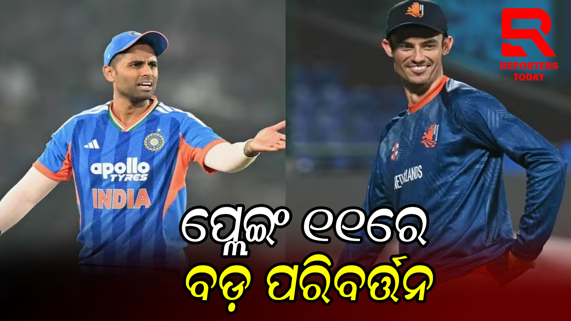 ନେଦରଲ୍ୟାଣ୍ଡସ୍ର ପ୍ଲେଇଂ ଇଲେଭେନ୍: ମାଇକେଲ୍ ଲେଭିଟ୍, ମ୍ୟାକ୍ସ ଓ’ଡାଉଡ୍, ବାସ୍ ଡି ଲିଡେ, କଲିନ୍ ଏକରମ୍ୟାନ୍, ସ୍କଟ୍ ଏଡୱାର୍ଡସ୍ (ୱିକେଟକିପର/କ୍ୟାପ୍ଟେନ୍), ଜ୍ୟାକ୍ ଲାୟନ-କାଶେଟ୍, ନୋହା କ୍ରସ୍, ରୋଲୋଫ୍ ଭାନ୍ ଡର୍ ମେରଭେ, ଲୋଗାନ୍ ଭାନ୍ ବିକ୍, ଆର୍ୟନ୍ ଦତ୍ତ, କାଇଲ୍ କ୍ଲେନ୍।