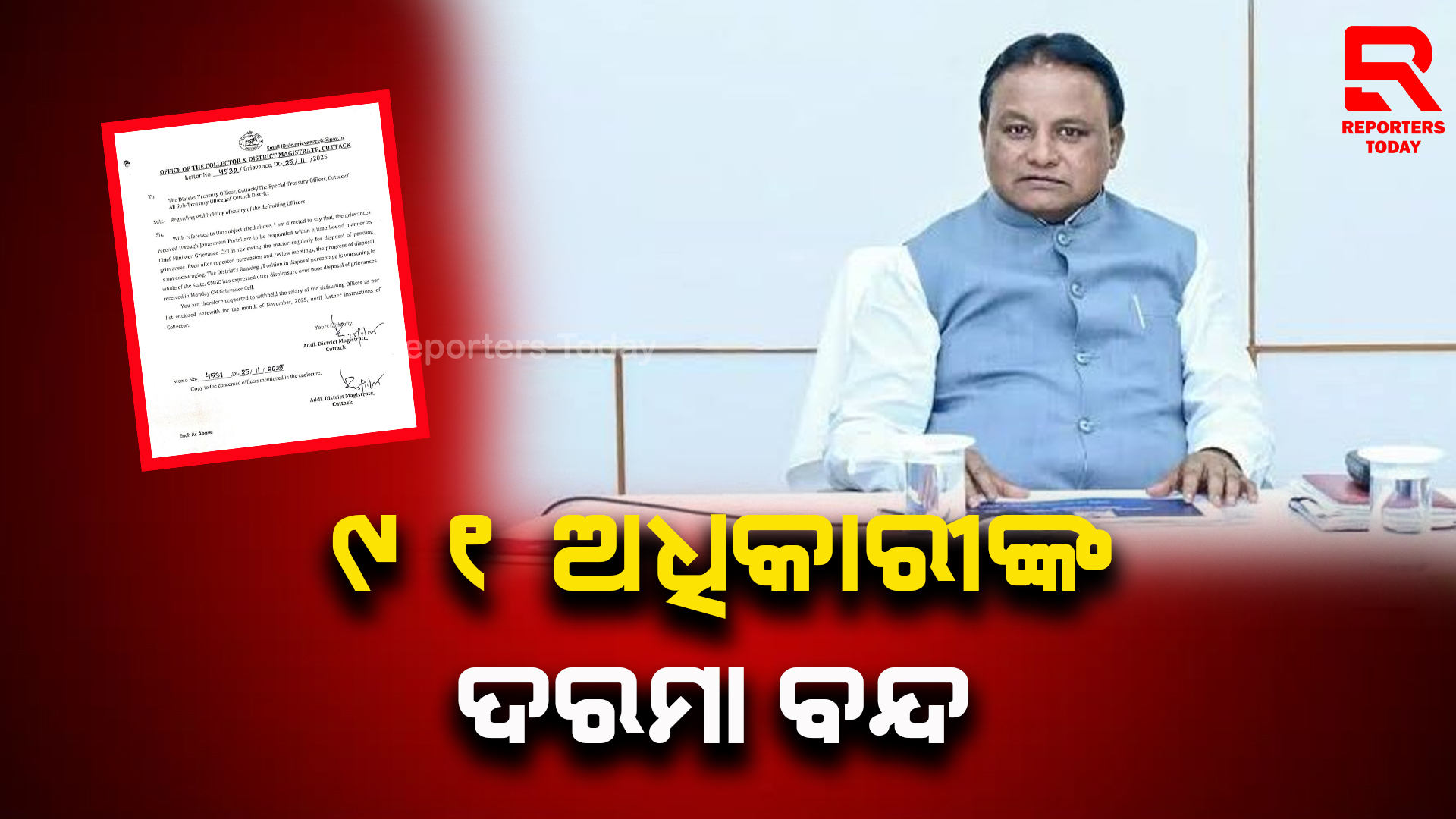 ମୁଖ୍ୟମନ୍ତ୍ରୀଙ୍କ ଅଭିଯୋଗ ପ୍ରକୋଷ୍ଠକୁ ଯାଇଥିବା ଅଭିଯୋଗ ଗୁଡ଼ିକର ନିର୍ଦ୍ଧିଷ୍ଟ ସମୟସୀମା ଭିତରେ ସମାଧାନ ନକରିଵାରୁ କଟକର ୯୧ଜଣ ଅଧିକାରୀଙ୍କ ଦରମା ବନ୍ଦ ପାଇଁ ମୁଖ୍ୟମନ୍ତ୍ରୀ ଅଭିଯୋଗ ପ୍ରକୋଷ୍ଠ ଚିଠି କରିଛନ୍ତି। ସେହି ଆଧାରରେ କଟକ ଜିଲ୍ଲାପାଳ ନିମ୍ନ ଲିଖିତ ଅଧିକାରୀ ମାନଙ୍କର ଦରମା ବନ୍ଦ ପାଇଁ ଟ୍ରେଜେରୀକୁ ଚିଠି ଲେଖିଛନ୍ତି। ଅଧିକାରୀ ମାନଙ୍କ ଭିତରେ ଅଛନ୍ତି ସି ଏମ୍ ସି କମିଶନର, କଟକ ଡିସିପି , କଟକ ଗ୍ରାମାଞ୍ଚଳ ଏସ୍ ପି, କଟକ ଉପଜିଲ୍ଲାପାଳ, ଆଠଗଡ ଉପଜିଲ୍ଲାପାଳ, କଟକ ଆର ଟି ଓ କଟକ ସିଡ଼ି ଏମ୍ ଓ , କଟକ ଡି ଇ ଓ , ଅଵକାରୀ ଵିଭାଗ ସୁପରିଣ୍ଟେଡେଣ୍ଟ , ଟ୍ରାଫିକ ଆଇ ଆଇ ସି ଏବଂ ଅନ୍ୟ ଅଧିକାରୀମାନଙ୍କ ନାମ ମଧ୍ୟ ଅଛି ।ଆକ୍ସନ ମୋଡ ରେ କଟକ ଜିଲ୍ଲାପାଳ। ୯୧ ସରକାରୀ ଅଧିକାରୀଙ୍କ ଦରମା ବନ୍ଦ ନିର୍ଦ୍ଦେଶ। ଜନ ଶୁଣାଣିକୁ କାର୍ଯ୍ୟକାରୀ ନକରିବାରୁ କାର୍ଯ୍ୟାନୁଷ୍ଠାନ ଗ୍ରହଣ କରିଛନ୍ତି ଜିଲ୍ଲାପାଳ। କଟକ ଜିଲ୍ଲାର ୯୧ ସରକାରୀ ଅଧିକାରୀଙ୍କ ଦରମା ବନ୍ଦ ନିର୍ଦ୍ଦେଶ।ଏହି ନିର୍ଦ୍ଦେଶ ଦେଲେ କଟକ ଜିଲ୍ଲାପାଳ ଦତ୍ତାତ୍ରେୟ ଭଉସାହେବ ସିନ୍ଧେ।।ଦରମା ବନ୍ଦ ଅଧିକାରୀ ଙ୍କ ମଧ୍ୟରେ ବାଙ୍କୀ ଓ ଆଠଗଡ଼ ଉପଜିଲ୍ଲାପାଳ, କଟକ ସି ଡି ଏମ୍ ଓ କଟକ ଡି ସିପି,କଟକ ଆରଟିଓ , ଟାଙ୍ଗୀ ଚୌଦ୍ବାର ତହସିଲଦାର ମଧ୍ୟ ରହିଛନ୍ତି।