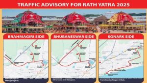 ପୁରୀ-: ବିଶ୍ୱ ପ୍ରସିଦ୍ଧ ରଥଯାତ୍ରା ପାଇଁ ପୁରୀରେ ଲକ୍ଷ ଲକ୍ଷ ଭକ୍ତଙ୍କ ସମାଗମ ହେବ। ତେବେ ଏହି ପରିପ୍ରେକ୍ଷୀରେ ପୁରୀ ସହରକୁ ବିଭିନ୍ନ ଦିଗରୁ ଆସୁଥିବା ଯାନବାହାନ ପାଇଁ ପୃଥକ ରୁଟ୍ ଏବଂ ପାର୍କିଂ ବ୍ୟବସ୍ଥା କରାଯାଉଅଛି। ତେବେ ବ୍ରହ୍ମଗିରି, ଭୁବନେଶ୍ୱର ଏବଂ କୋଣାର୍କ ପାଖରୁ ଆସୁଥିବା ଯାନବାହାନ ପାଇଁ ଟ୍ରାଫିକ ପରାମର୍ଶ ଜାରି କରାଯାଇଛି। ସୁଗମ ଯାନବାହାନ ଚଳାଚଳ ଏବଂ ପାର୍କିଂ ବ୍ୟବସ୍ଥା ନେଇ ମଙ୍ଗଳବାର ଦିନ ଟ୍ରାଫିକ ପରାମର୍ଶ ଜାରି କରିଛି ପୋଲିସ।