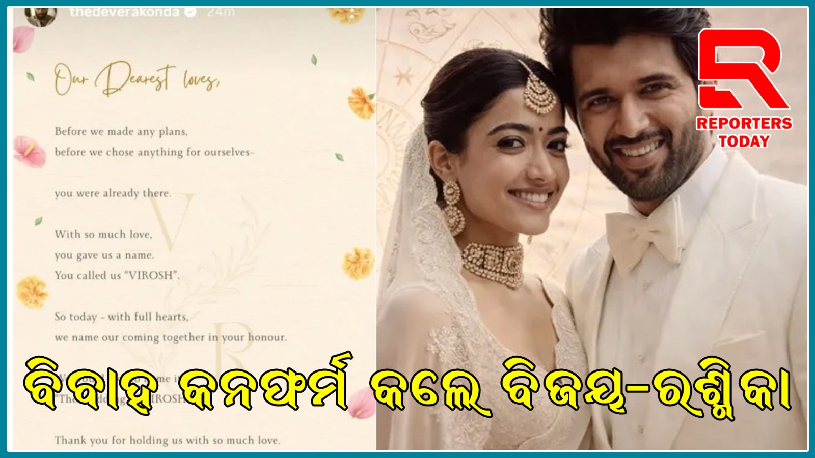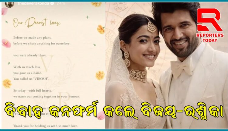 ଉଭୟ ତାରକା Geetha Govindam ଓ Dear Comrade ଭଳି ସୁପରହିଟ୍ ଫିଲ୍ମରେ ଏକାଠି କାମ କରିଥିଲେ। ସେଠାରୁ ଉଭୟଙ୍କ ମଧ୍ୟରେ ଘନିଷ୍ଠତା ବଢ଼ିଥିବା ନେଇ ଚର୍ଚ୍ଚା ଚାଲିଥିଲା। ଯଦିଓ ସେମାନେ କେବେବି ସମ୍ପର୍କକୁ ସାର୍ବଜନୀନ ଭାବେ ସ୍ୱୀକାର କରିନଥିଲେ, ବିଭିନ୍ନ କାର୍ଯ୍ୟକ୍ରମରେ ଏକାଠି ଦେଖାଯିବା ଫ୍ୟାନ୍ସଙ୍କ ମନରେ ଆଶା ସୃଷ୍ଟି କରିଥିଲା। ଦୀର୍ଘ ବର୍ଷର ଅନୁମାନ ପରେ ଏବେ ଏହି ଚର୍ଚ୍ଚିତ ଯୁଗଳ ନିଜ ସମ୍ପର୍କକୁ ଅଧିକାରିକ ରୂପ ଦେବାକୁ ଯାଉଛନ୍ତି। ‘Virosh’ ବିବାହକୁ ନେଇ ସୋସିଆଲ୍ ମିଡିଆରେ ଉତ୍ସାହ ଚରମ ସୀମାକୁ ପହଞ୍ଚିଛି।
